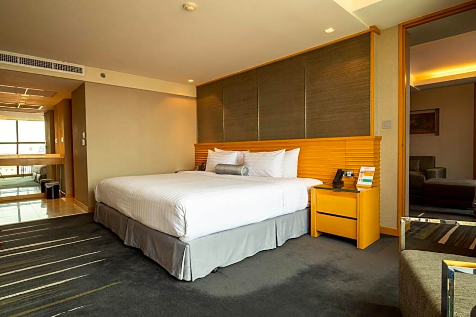 Located on the 5th and 6th floors, the room features a living room and a working desk with business amenities.
